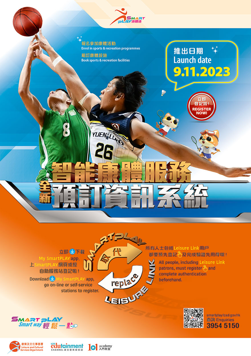 The Leisure and Cultural Services Department (LCSD) announced that the new intelligent sports and recreation services booking and information system, SmartPLAY, will be officially launched at 7am on November 9 to replace the current Leisure Link Computerised Booking System which will stop operation from November 6 onward.