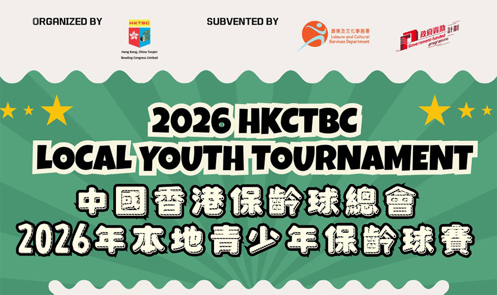 2026 HKKCTBC Local Youth Tournament23rd February, Hong Kong, China: Hong Kong China Tenpin Bowling Congress is pleased to announce that the 2026 HKCTBC Local Youth Tournament will be held on Match 14,15 and 21,22, 2026 at SCAA Bowling Center, Causeway Bay, Hong Kong.